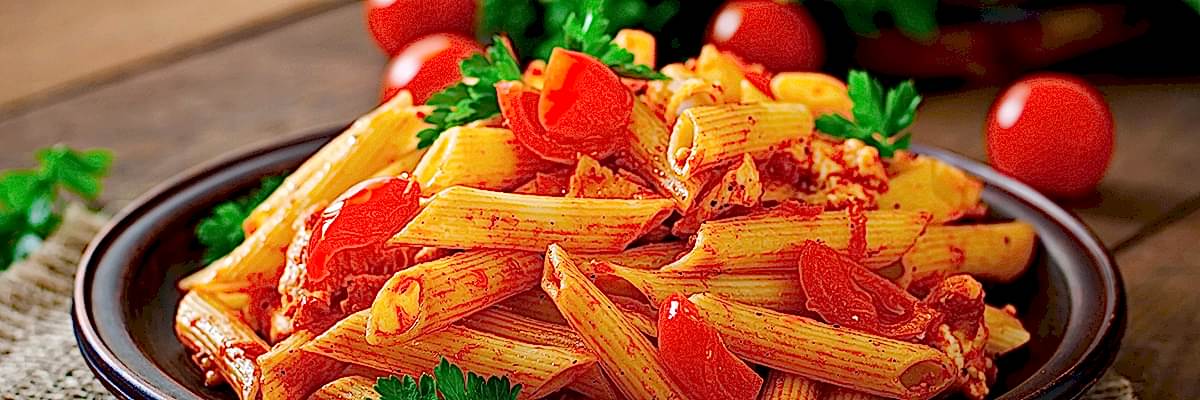 | Muhteşem Dörtlü Tavuklu Makarna (Penne makarna, tavuk, arpacık soğan, mantar, kapya biber, yeşilbiber, karabiber, krema) |